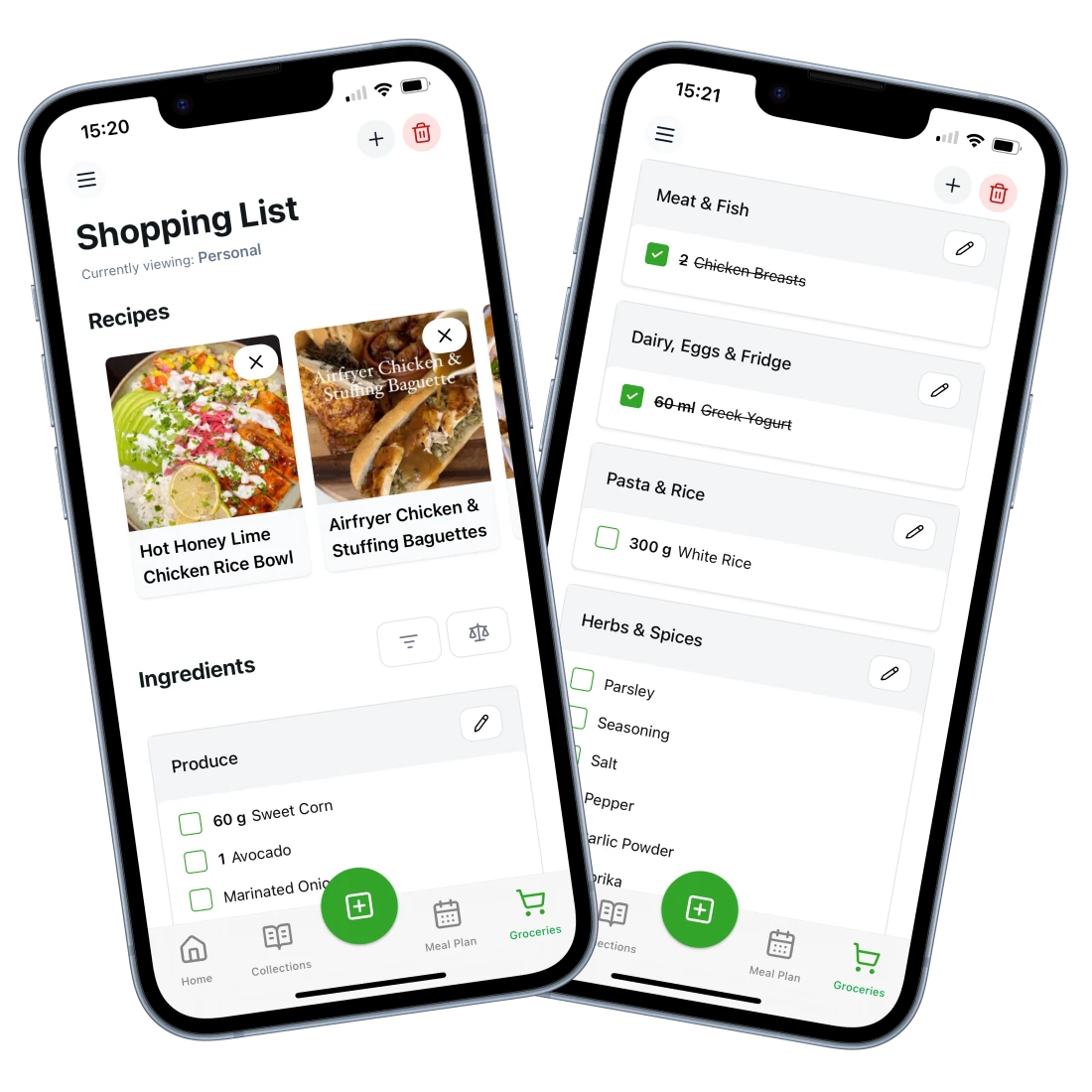 Each group includes a shared meal plan, shopping list, and recipe collections making it easy for everyone to stay in sync.